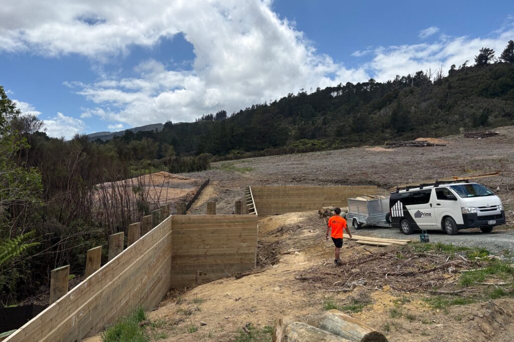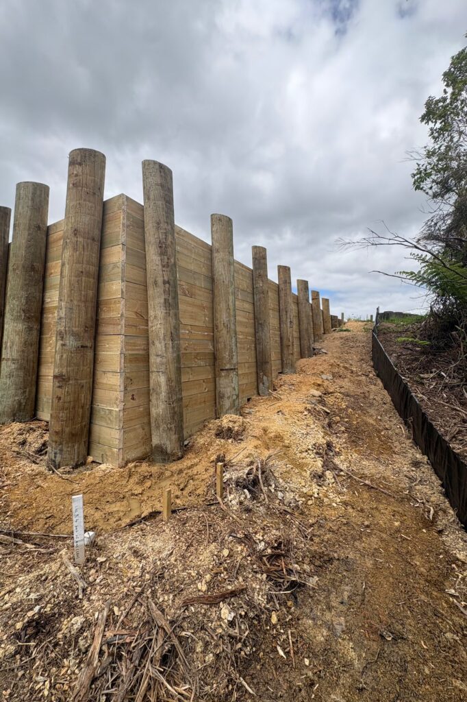 – Installation of 200 x 50 timber lagging to form the retaining structure.