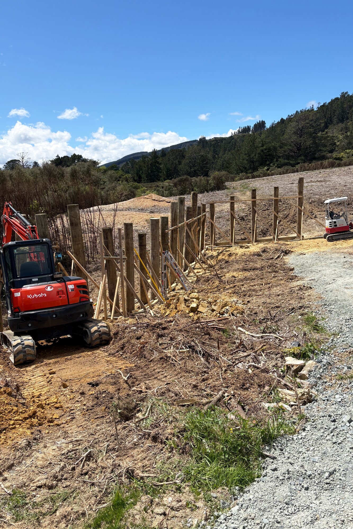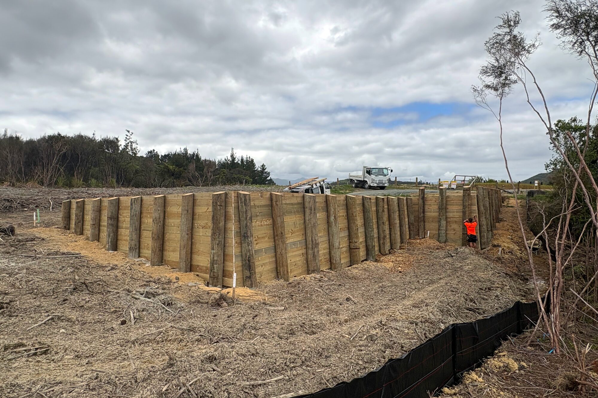 – Installation of 200 x 50 timber lagging to form the retaining structure.